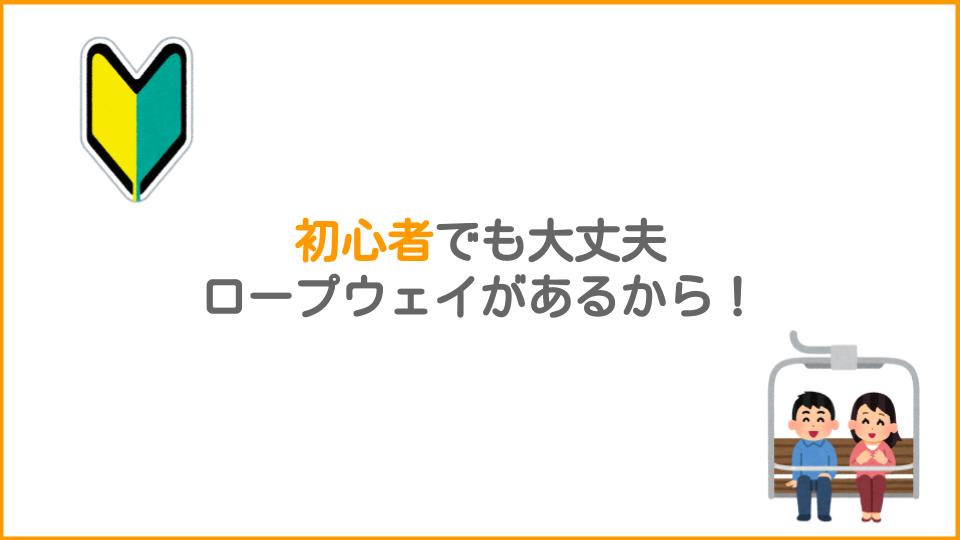標高が高い=難易度が高いと思うかもしれませんが、ロープウェイを使えば難易度はグッと下がります。