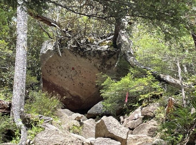 写真の赤丸部分が人間なので、比較すると岩の大きさがよく分かります。