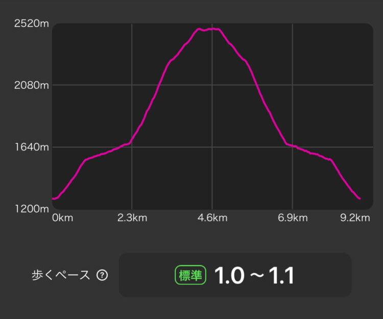 キツい理由としてはまず累計標高差が約1,200m以上あること