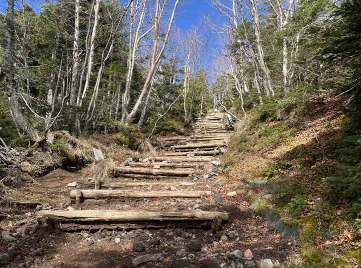 体力があれば初心者でも登れますが、急登なので上り下りにかなり神経を使います。